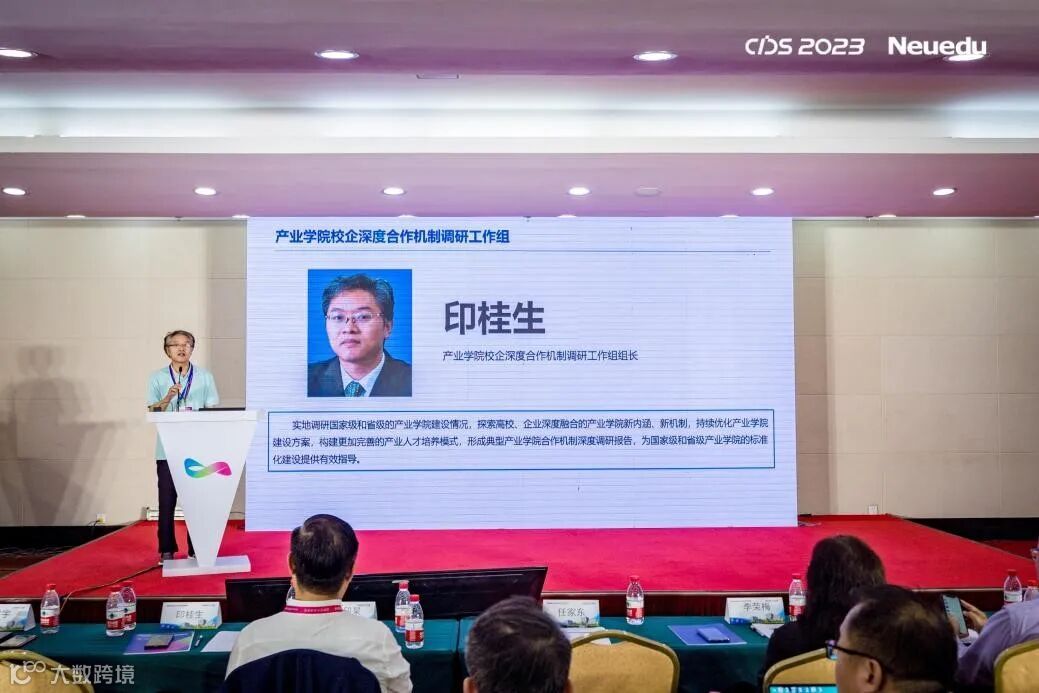 产教融合工作委员会主任、东软教育科技集团高级副总裁李印杲作题为《以4S服务模式推动数字人才培养的深度产教融合》的报告。报告阐述了数字时代需要什么样的人才,如何通过产教融合共育数字人才。介绍东软基于产教融合的 4S 服务模式等方面,深度产教融合的数字人才培养模式,以及如何通过 4S 服务模式即平台(PAAS)、软件(SAAS)、资源(CAAS)、数据(DAAS)推动和保障数字人才培养过程的规范化、具象化及可衡量化,更加有效地赋能学习者。