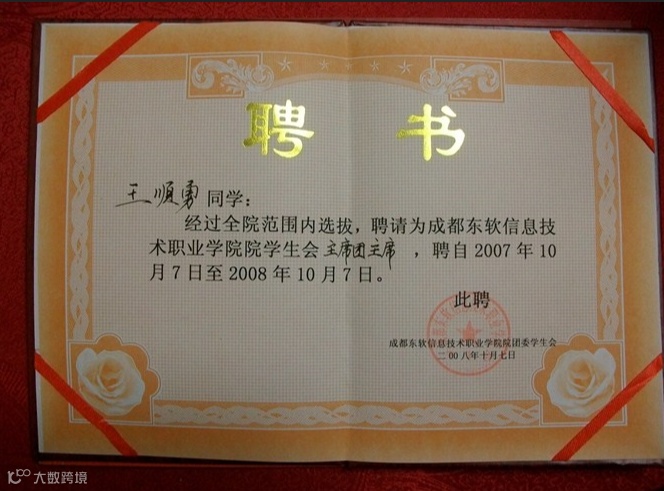 毕业以后,王顺勇入职了成都的一家公司,凭借着自己勤奋好学、勇于奉献的精神,加上自己在校学习到的文案策划及管理能力,一年半时间,他在单位创造了不错的成绩,很快上升到区域经理的位置。