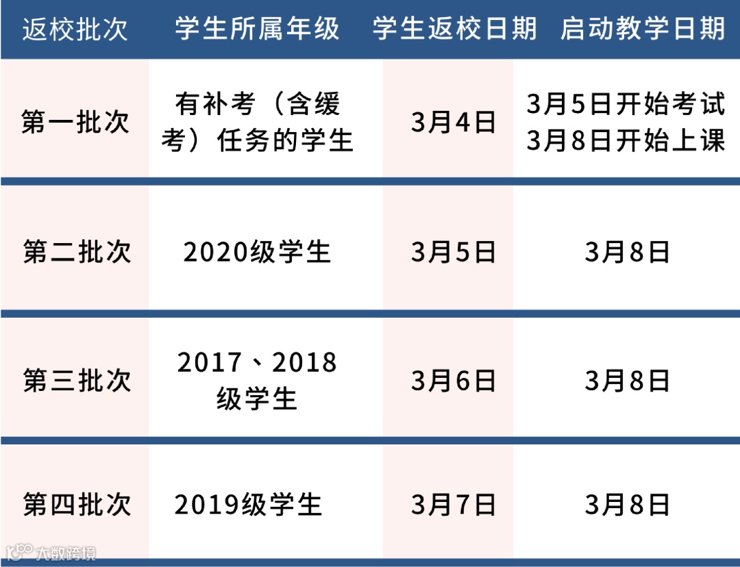 返校批次及时间安排