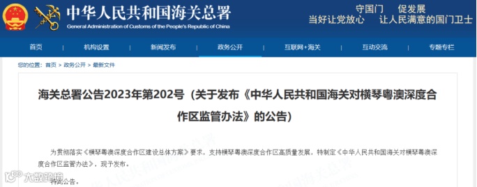 根据海关总署于1月2日发布的公告,为了贯彻落实《横琴粤澳深度合作区建设总体方案》的要求,支持横琴粤澳深度合作区的高质量发展,海关总署特制定了《中华人民共和国海关对横琴粤澳深度合作区监管办法》,现予以发布。