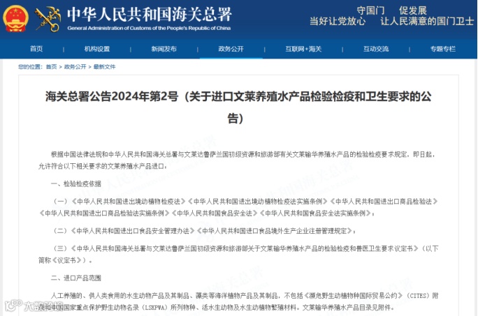 根据海关总署于1月3日发布的公告,根据中国法律法规和中华人民共和国海关总署与文莱达鲁萨兰国初级资源和旅游部有关文莱输华野生/养殖水产品的检验检疫和卫生要求规定,即日起,允许符合相关要求的文莱野生/养殖水产品进口。这意味着符合规定的文莱水产品可以进入中国市场。