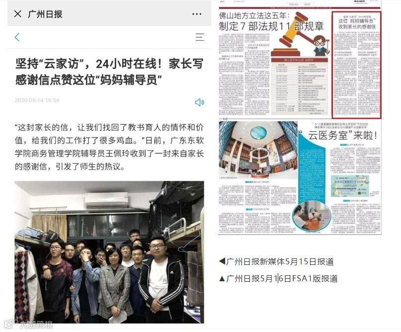 刚过去的这个周末,广州日报一篇“坚持‘云家访’,24小时在线!家长写感谢信点赞这位‘妈妈辅导员’”的文章,让广东东软学院校商务管理学院辅导员王佩玲老师的事迹广泛传播开来,这是东软教育众多辅导员中的一个缩影,感动着家长,也感动着我们。