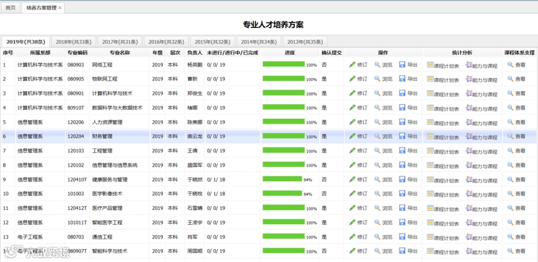 ☑ 培养方案集中管理:实现校级培养方案数字化、可视化集中管理,便于书记、校长了解专业人才培养方案的制定与实施;