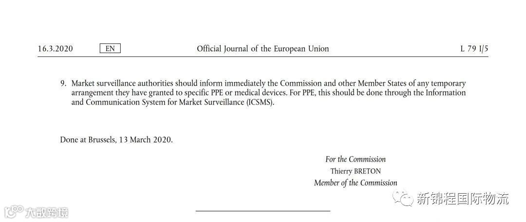欧盟会员会在欧洲官方杂志( Official Journal of the EuropeanUnion)发布了疫情期间针对医疗器械和个人防护用品 (PPE)的符合性评价和市场监督程序的建议。