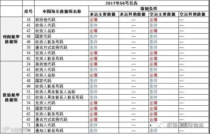 ❻ 2017年56号公告对进境原始舱单主要数据项进行了调整,并且将在申报过程中进行系统校验。舱单数据尽可能准确、完整,以下信息不建议申报后更改。