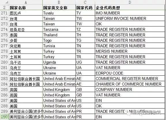 B.境外企业:按照海关总署公告中提到的《企业代码类型汇总表》(公众号内回复关键词“企业代码表”获取Excel完整表)查找并填写对应国家的对应代码。