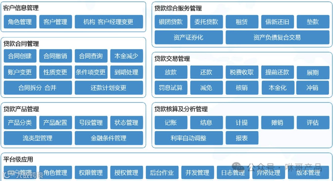 统一开发平台,实现对客户信息、贷款综合服务、贷款合同、贷款交易、贷款产品、贷款核算及分析的管理。