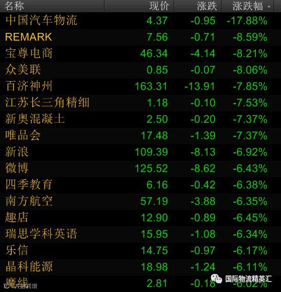 在美国上市的中概股,跌幅尤为惨重。截至发稿,唯品会下跌7.5%,微博下跌6.5%,南方航空下跌6.35%,百度跌4.8%,网易下跌4.6%,阿里跌超4%。