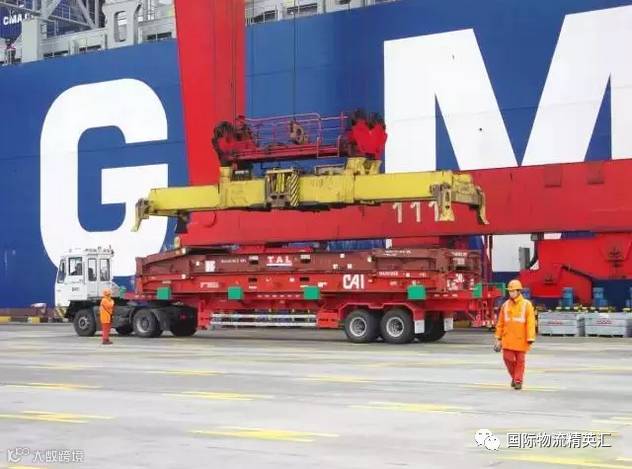 通常情况下,如果货物长度超过11.8米且宽度遮挡框架箱吊点、或高度超过箱货吊装极限、或货重超过单个集装箱S大荷载,就不能装载于单个框架箱上,要以集装箱班轮方式出运,可以采取"分体吊装"(2 ORMORE FLAT RACKS as bed = BREAK BULK,即BB CARGO)的作业方式。分体吊装,也就是多个平板箱组合成一个大的"托盘",把这种双超、三超甚至四超的重大件货物捆扎在这个"托盘"上。根据货物的尺寸、外形及加固需求,船公司将提供一至数个框架柜,当苒数个框架柜时,通常采用横船积载(Athwartships Stow)方式积载于舱内,并在船公司委派的公证人员、发货人及船方的指引下,在货物起吊上船后进行加固;码头在接收BB CARGO之前,必须由船公司提供以书面形式申请并提供相关信患(使用框架箱数茔、船舶积载方案、货物包装、重心及吊点、绑扎材料提供方、水平运输方式、现场公正人员等),当码头与船公司确认后,方能接收此BB CARGO