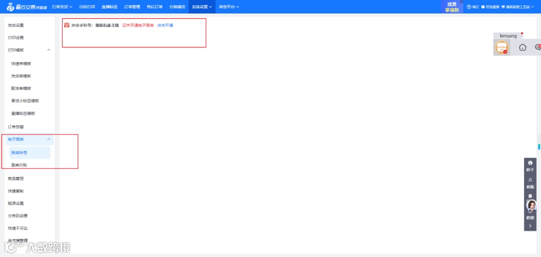 每个平台都有其专属的电子面单体系,大家只需按照对应平台的要求完成开通即可,这是开启打印电子面单之旅的第一步哦。