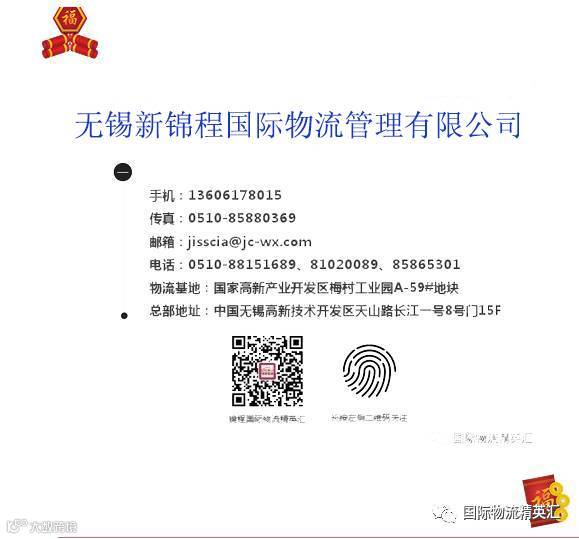 无锡新锦程国际物流管理有限公司是一级国际货运代理企业,拥有NVOCC无船承运人证书,一类货运资格认可证书。无锡首家通过ISO9001-2015英国质量管理体系认证的国际货运代理企业,是经国家外经贸部、交通部批准设立的货代常务理事、百优报关企业,而且成功入驻阿里巴巴一拍档。成为阿里巴巴一达通服务商。