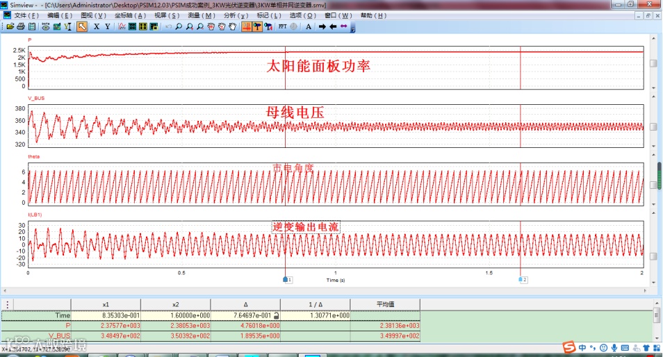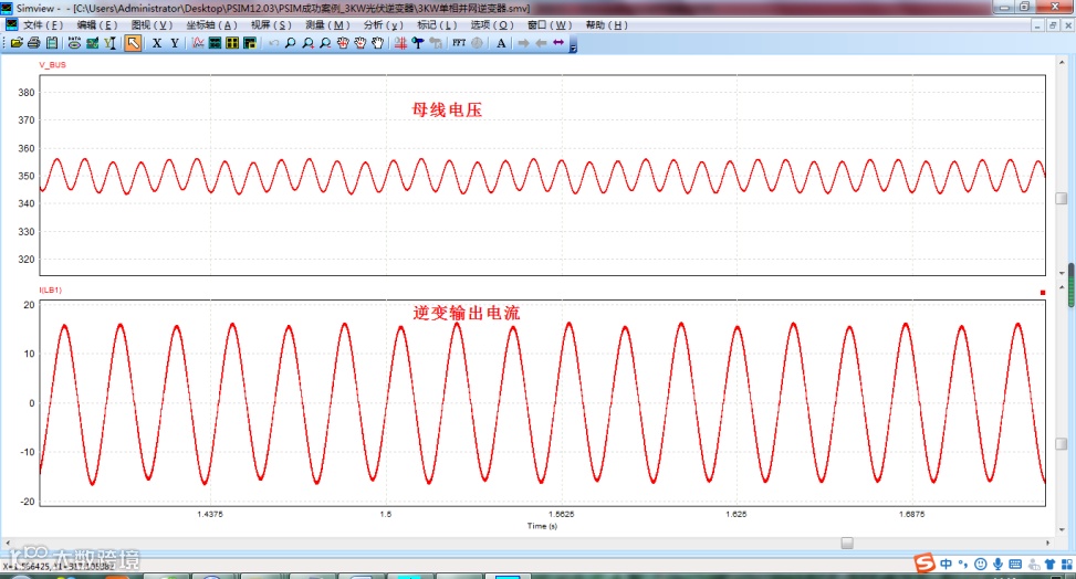 逆变侧H4拓扑很好的将母线电压控制在350V,输出电流波形也是很标准的正弦电流,逆变环路达到了稳定母线电压的功能,同时将母线能量转化为交流能量传输到电网。