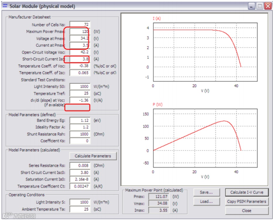 请注意,计算结果是近似的,仅提供基本值。可以通过调整这些参数,使计算的I- V曲线与数据表曲线或实验结果相匹配。