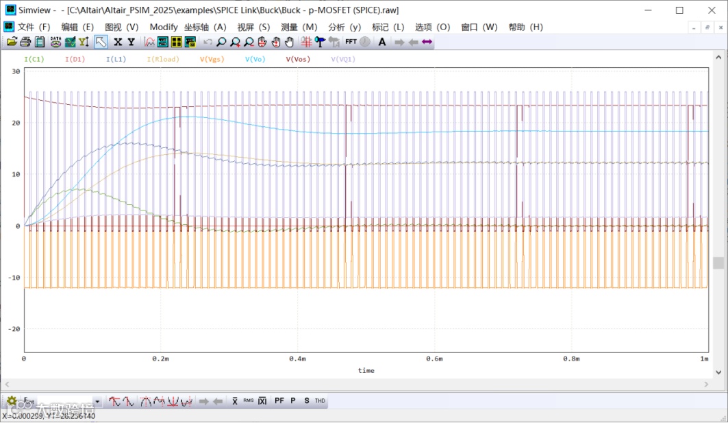 C:\Altair\Altair_PSIM_2025\examples\SPICE Link\Buck中。以下为打开的原理图: