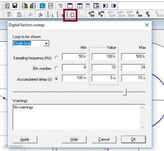 此时会弹出数字设置框,要求输入特定的数字参数:采样频率、位数和累积延迟。采样频率通常与开关频率相同,但也可能不同。