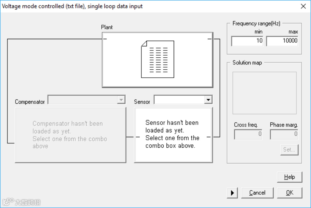 选定穿越频率和相位裕度之后,解决方案图将显示在输入数据窗口的右侧。如果在任何时候需要更改这两个参数,只需点击显示的解决方案图即可。