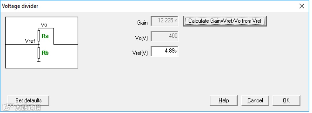 点击sensor选项卡,选择voltage divider传感器拓扑结构。输入 4.89uV的参考电压,然后点击calculate gain按钮,见图8。