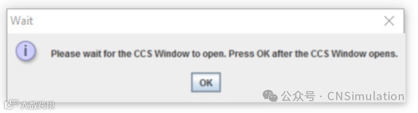 CCS将会启动,启动后点击OK关闭弹出窗口,开始PIL仿真。仿真运行过程中,在PSIM中点击Pause Simulation图标暂停仿真,该图标位于工具栏SIMVIEW图标左侧,如下图所示。