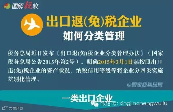 税务总局近日发布《出口退(免)税企业分类管理办法》(国家税务总局公告2015年第2号),明确2015年3月1日起按照出口退(免)税企业的资产状况、纳税信用等级等将企业分四类实施差别化管理。四类出口企业的评定标准是什么?如何申报退税?