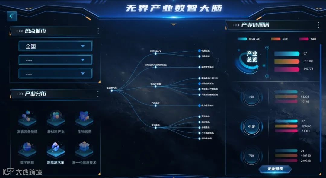 「天涯若比邻」产业大数据,基于全国千万级企业数据库,利用全国超过200个产业链数据,展示产业链上下游企业分布情况,帮助政府与企业了解市场趋势、行业动态和竞争对手情况,从而提供决策支持。