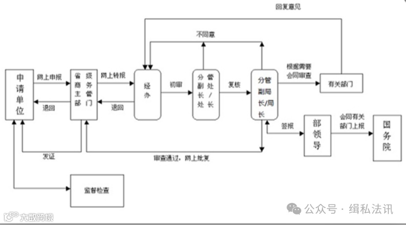 (三)、商务部在收到许可申请后进行审查,或者会同有关部门审查。必要时,报国务院批准。经审查许可的两用物项出口申请,批复数据转送省级商务主管部门,由省级商务主管部门发放两用物项出口批复单,企业凭批复单在所在地领取《两用物项出口许可证》,凭证报关(参见商务部、海关总署公告2020年第66号公布两用物项和技术进出口许可证申领和通关无纸化有关事项)。