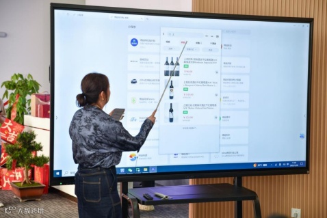 随后,工作人员进行了精彩的跨境小程序系统演示。大屏幕上展示的跨境小程序系统,功能丰富,涵盖货品查询、进出口报关、订单配货等多项操作,体现公司数字化、智能化运营水平;跨境电商小程序中,各类商品琳琅满目,包括葡萄酒等,预示着公司跨境电商业务的丰富品类与广阔前景。