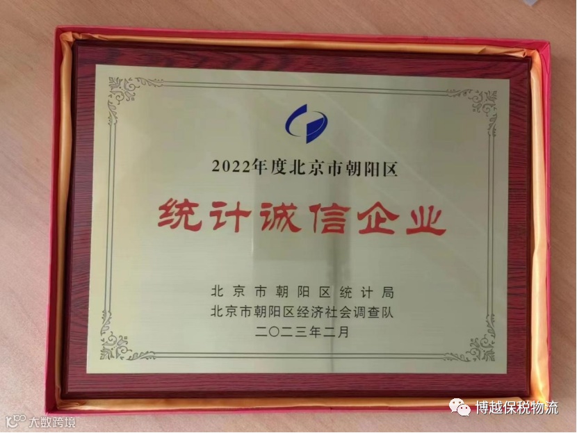 博越锦程国际物流(北京)有限公司获得了2022年北京市统计诚信企业称号。