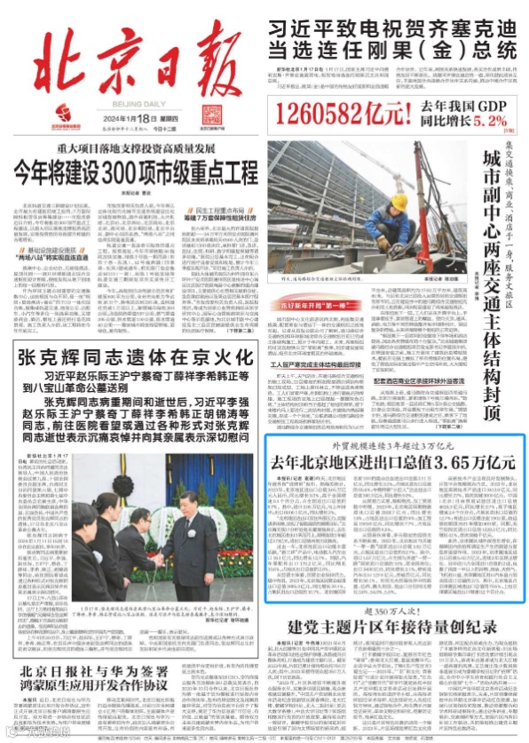 2023年北京地区进出口3.65万亿元 外贸规模连续3年突破3万亿元