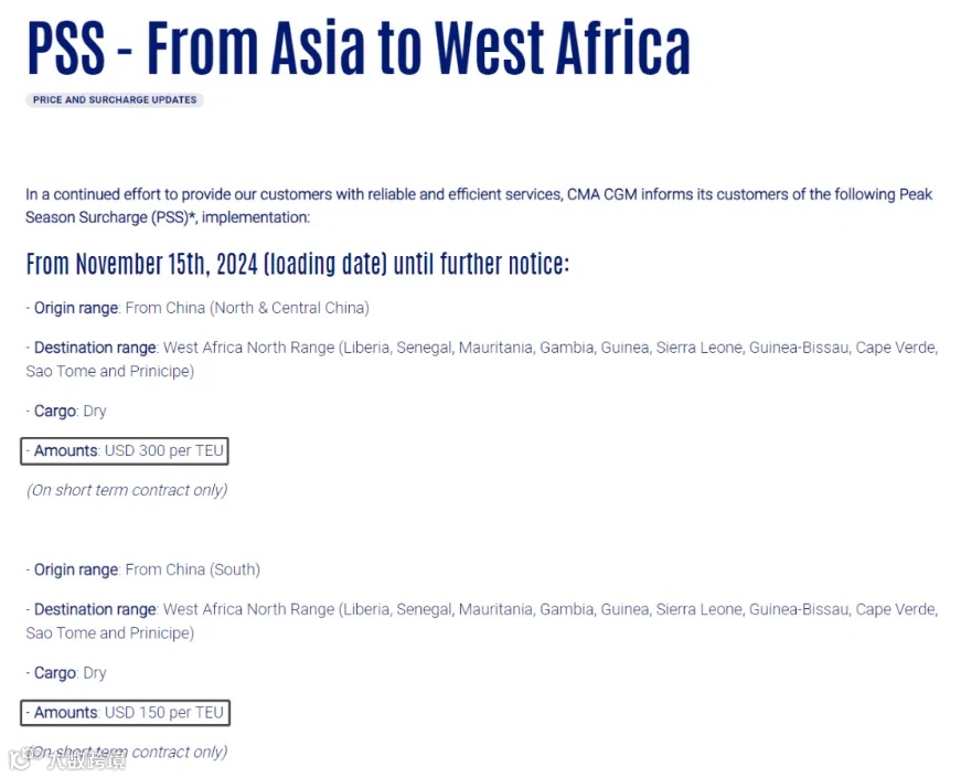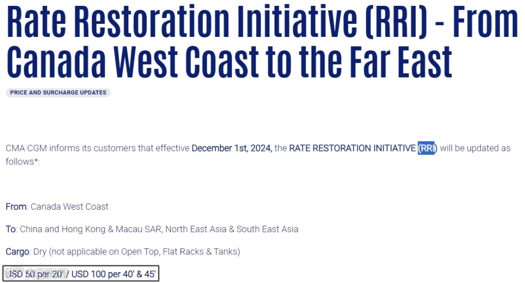 2)达飞告知其客户,自2024年12月1日恢复加拿大西海岸到中国及香港及澳门特别行政区、东北亚及东南亚RRI。详情如下: