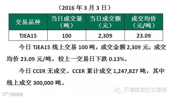 2016年3月3日天津碳市场成交公告