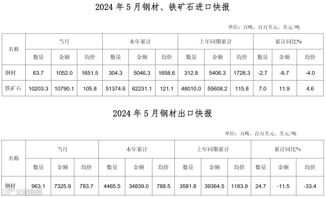 据海关统计,2024年1-5月我国累计进口钢材304.3万吨,同比减少8.5万吨,下降2.7%。