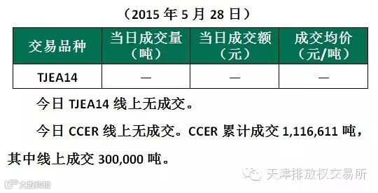 2015年5月28日天津碳市场成交公告