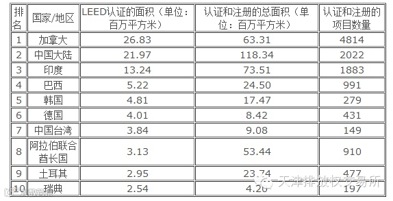 加拿大、中国、德国、巴西、印度、韩国和土耳其。这份名单不包括美国市场,在全美的认证面积近2.77亿平方米,项目总量接近5.4万个。