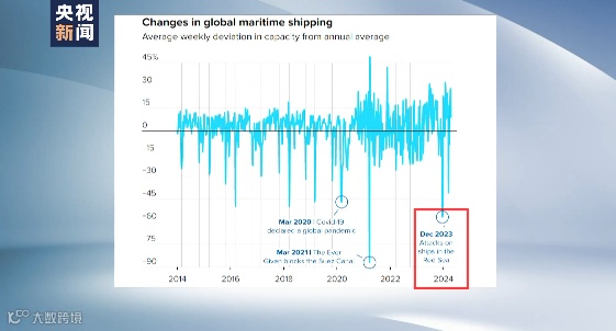 报告认为,红海商船频繁遭袭对全球供应链造成严重冲击,超过了新冠疫情初期对全球供应链的影响。