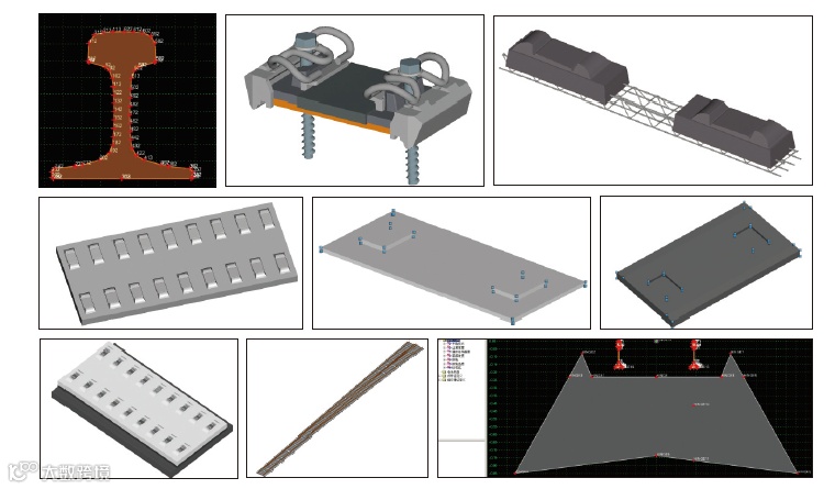 设计中完成了扣件系统、双块式轨枕、Ⅲa型长枕等构件库的建立,创建了钢轨、参数化有砟道床等横断面模板库,建立不同跨桥梁Ⅲ型板轨道结构、道岔区长枕埋入式无砟轨道等轨道组合构件库,以提高复用性。