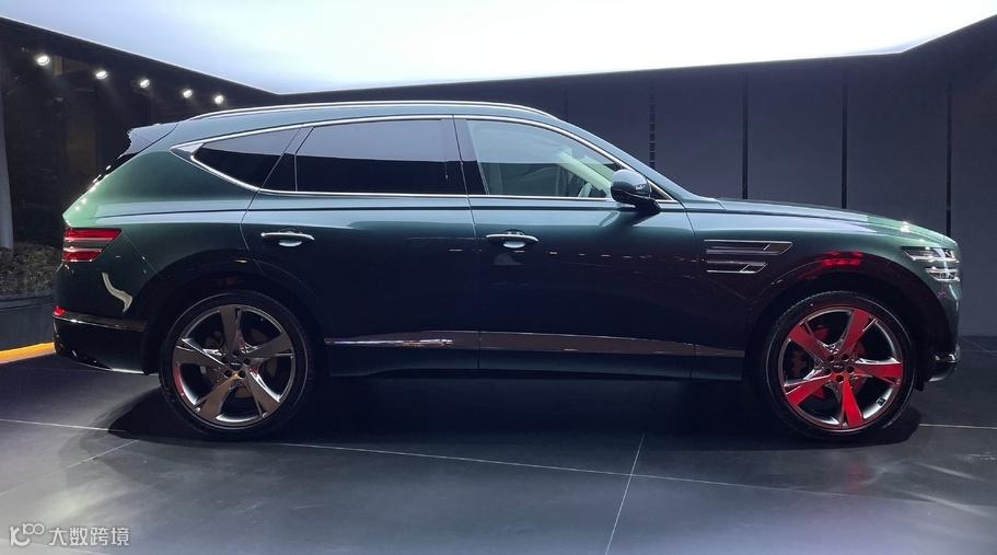 再来看它的另一款车型捷尼赛思GV80。GV80定位于中大型SUV,也是品牌首款SUV车型,它的车身长度达到了4945mm,轴距为2955mm,采用“2+3+2”的三排座椅布局。