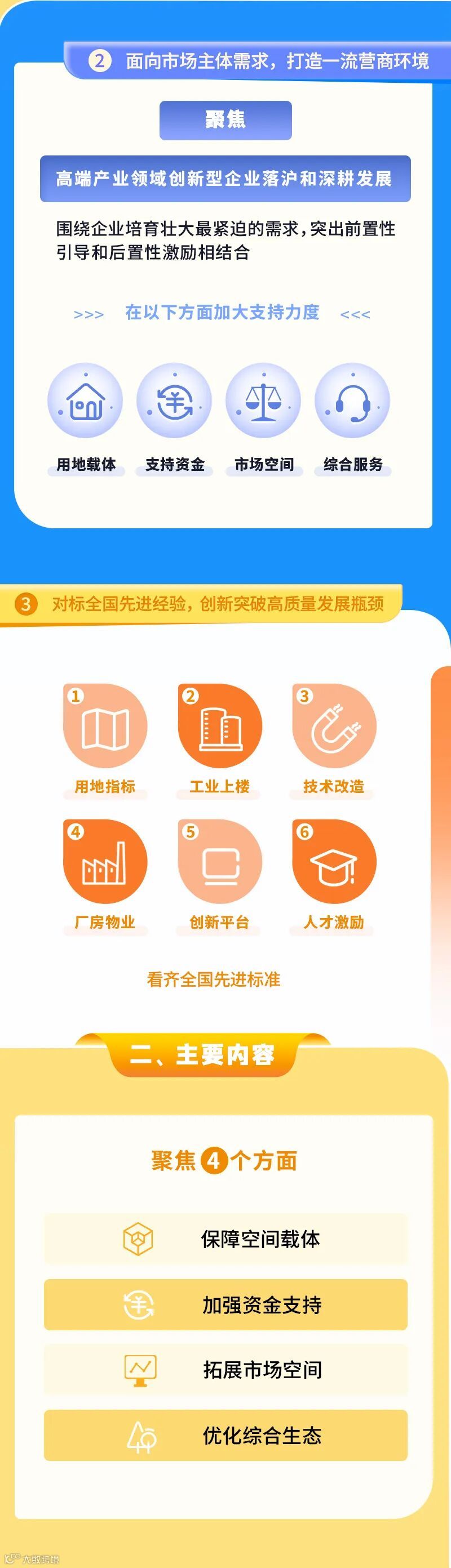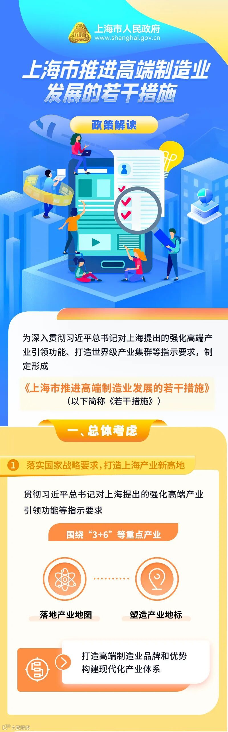 近日,上海市人民政府办公厅印发了《上海市推进高端制造业发展的若干措施》的通知。通知提出,要保障产业发展用地空间,探索工业上楼新模式,加强优质低价标准厂房和通用研发类物业供给,打造产业地标......无界招商小编整理了该产业政策及图解供大家参考借鉴。