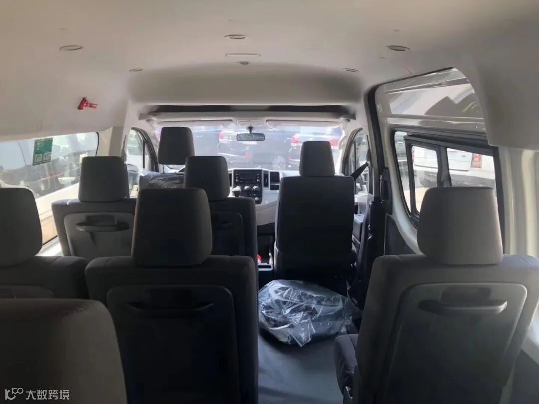 新丰田海狮为国五排放标准,长5380mm,宽:1880 mm,高:2285 mm。车厢设计宽敞,中间走道将乘客座椅隔开,更方便乘坐及进出。同时设有安全扶手,为乘客提供安全及舒适感。到港车型为4排12座椅车型,采用2+3+3+4布局。