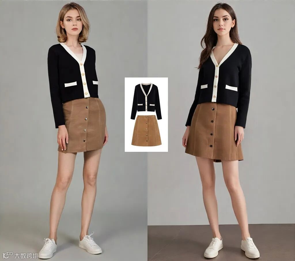不用真人模特拍摄,只需要用一张平铺图,就能得到多场景多姿势的模特穿搭图
