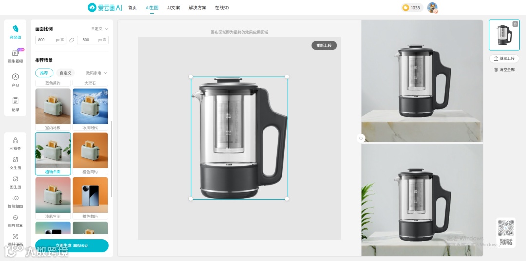 只需轻轻一点,爱云画的 AI 商品图合成功能就能为你打造出令人惊艳的数码家电商品图。