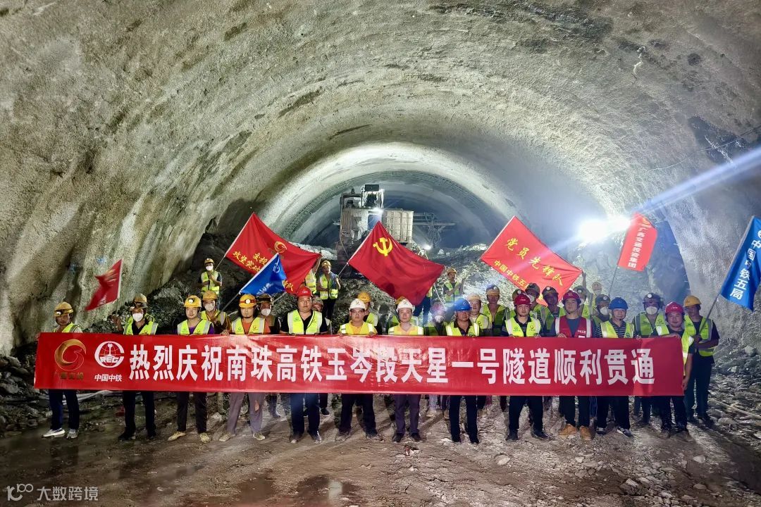 近日,由广西交通投资集团投资、国铁南宁局代建、中铁五局承建的南珠高铁玉林北至岑溪东段重难点控制性工程——天星一号隧道顺利贯通。至此,该区段22座隧道全部实现贯通,为后续无砟轨道施工及铺轨工程打通施工通道,项目建设取得突破性进展。