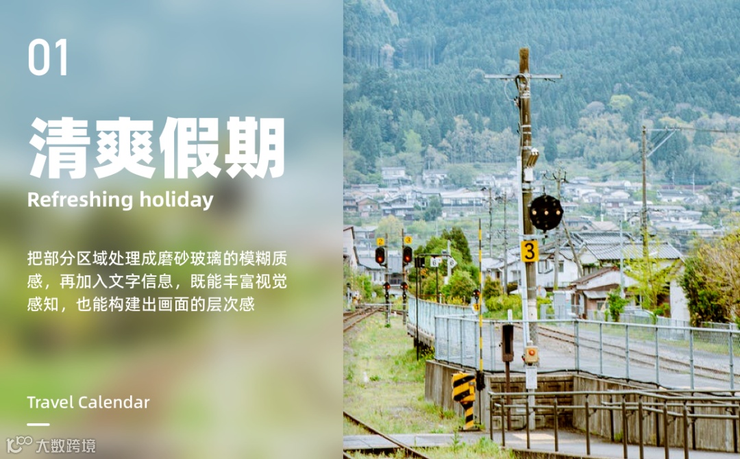 模糊的手法同样适用于照片,把部分区域处理成磨砂玻璃的模糊质感,再加入文字信息,既能丰富视觉感知,也能构建出画面的层次感