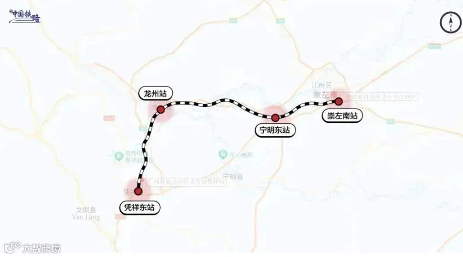 据悉,南凭高铁崇凭段正线全长81.52公里,设计时速250公里,线路东起崇左南站,途经宁明县、龙州县,终至凭祥市凭祥东站。建成通车后,南宁至凭祥铁路运输时间将缩短至2个小时以内