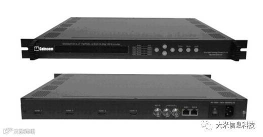 2.编码器:将模拟音视频节目源的数字化:对模拟音视频节目源进行编码、压缩。主要用于自办节目的现场直播的场合,摄象机的视频和音频信号,通过一些必要的处理,送入到编码器进行数模变换、 MPEG-2标准的编码和压缩、视/音频/数据信息TS流的复用,称之为节目级复用——指从各ES流到单路节目TS流的复用。可根据节目的内容场景不同,可采用不同的编码数率。
