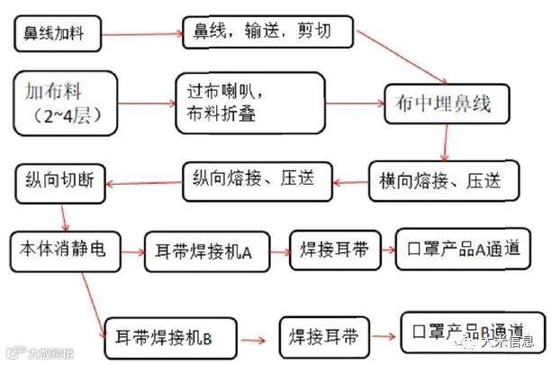 2)双层口罩材料:无纺布、鼻梁筋、耳挂;