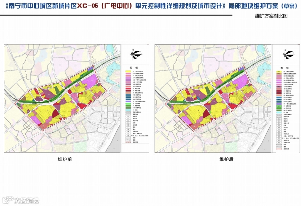 根据《南宁市中心城区新城片区XC-05(广电中心)单元控制性详细规划及城市设计》局部地块维护方案(草案),本次规划维护范围位于长堽路南侧、葛村路北侧。