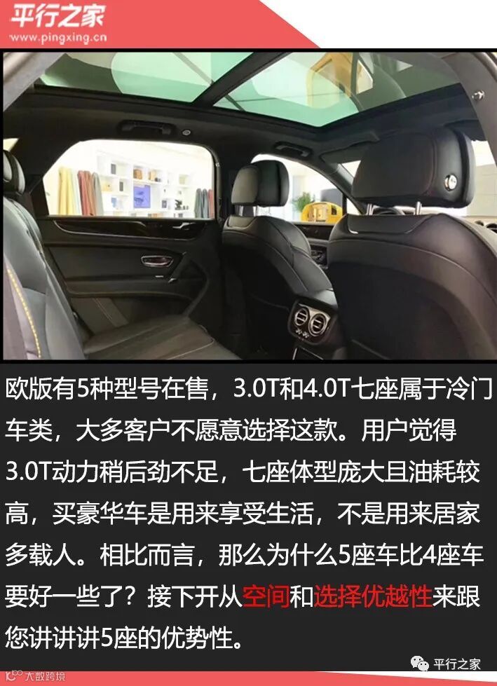 的技术探索和革新,终于在2015年的时候,英国女王成为它的首位驾驶者,随后宾利添越诞生了2016款(已停售)、2017款、2018款、2019款和2020款的迭代车型,今天给大家介绍的就是2020款宾利添越4.0T 欧规5座。