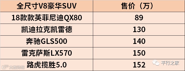 就算是在小一个级别的中大型豪华SUV里头,也找不到售价比QX80还低的8缸型号。
