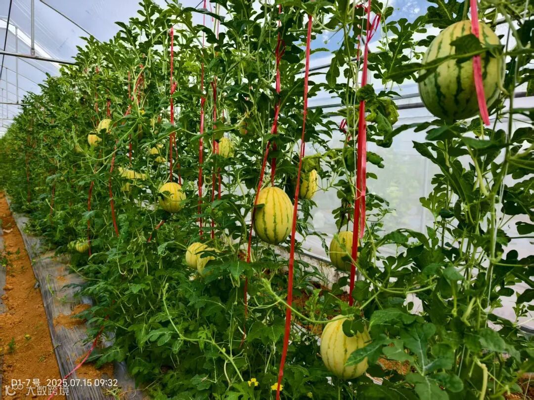 这些新品种西瓜,不仅颜值亮眼,更是科技培育的成果,薄皮轻轻掰就裂,没有科技与狠活,纯本味,自然挂熟透心甜。示范园里的技术员们精心照料,从选种到种植都藏着学问,让每一口甜都来得扎实。捧一个在手里,冰凉的触感驱散夏日燥热,这红黄交织的甜蜜,是示范园献给夏天最爽口的礼物。
