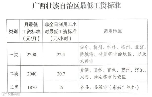 通知指出,根据《中华人民共和国劳动法》和《最低工资规定》有关要求,结合广西实际,决定对全区最低工资标准进行调整,调整后的全区最低工资标准自2025年7月1日起执行。